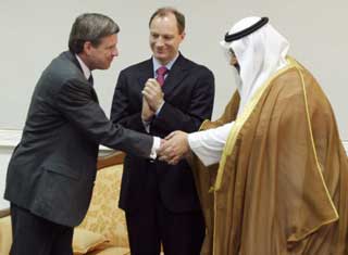 Bremer sat on the couch with Allawi and President Ghazi al-Yawer.