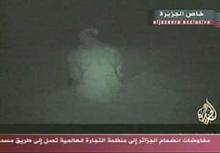 The Arab satellite station aired video showing a blindfolded man sitting on the ground. Al-Jazeera said that in the next scene, gunmen shoot the man in the back of the head, in front of a hole dug in the ground. It did not show the killing.
