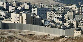 A section of the barrier separating the eastern neighborhoods of Jerusalem from the West Bank town of Abu Dis (rear) is seen on June 25. [AFP]