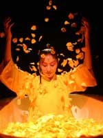 In Li's play, running at the Beijing People's Art Theatre until July 4, Hua is weary of fighting and living as a man. She wants to take a bath in the river and regain the consciousness of herself as a woman. That desire creates a struggle between her wish to regain her true identity and her obligation to fight as a man. The latter is represented by Hua's father, a character with a very minor role in the ancient tale. To him, Hua's idea of finding herself through a bath is totally unacceptable, for Hua is already a man, a soldier, who will be seen as cheating the emperor by revealing her real gender. Meanwhile, Zhang Guan and Li Dai, two ghosts who fought under the direction of Hua and Hua's father, feel humiliated to learn that Hua is a woman. Hua's father makes things clear. He says he will allow her to take a bath only if she can cut apart the stream in the river with her sword. Otherwise, she will have to kill him before she fulfills her wish. Hua sets to work, chopping at the river. Suddenly the water turns into ice and is cut apart. Hua melts the ice with her own body, and is freed in the water. Seeing that he can not prevent Hua from bathing and to protect his honour, Hua's father kills himself. Hua's father, Zhang and Li all disappear. Is the whole thing reality or Hua's imagination? The names of Zhang Guan and Li Dai are taken from the Chinese idiom "Zhangguan Lidai," which means to put Zhang's hat on Li's head, a play of words with a message: One thing can be confused with another. "I feel a revival of humanity in this play," said opera composer Jin Xiang. "It is full of modern aesthetics." "Hua Mulan" is the second play of Li's trilogy of war heroines, which tries to portray three ancient heroines with a new perspective. Like the first play "Mu Guiying," which debuted last September, "Hua Mulan" also reflects its theme through one episode in the heroine's life. "Mu Guiying" however, takes place as the heroine is going to a battle, while "Hua Mulan" shows a heroine trying to shake off her warring robe. Whereas Mu chooses to fight for her people, Hua decides that her wish is to live as a woman. If "Mu Guiying" tries to establish heroism, "Hua Mulan" does the opposite to scrutinize the things that helped make the heroine. In line with "Mu Guiying," "Hua Mulan" maintains a cast of four traditional Chinese opera actors and a "one tub, two chairs" set Li created on the base of the traditional Peking Opera set of "one table, two chairs." The tub, which represents the bath, is a symbol of privacy. It grows in significance for Hua, a woman disguised as a man. "Hua Mulan" serves as a second experiment for Li's "new drama," which adapts an innovative traditional Chinese opera language. "The 'new drama' is different from traditional opera, drama, Western opera, musical and variety show, but it might incorporate all these styles," said Li. Obviously, "Hua Mulan" is an unrealistic play, and it takes a form similar to stream of consciousness, which makes it hard for the audience to follow the plot. Music plays a more active role in "Hua Mulan" than in "Mu Guiying," though the latter uses a band of nine people while the former only had four musicians. This is indicated in the long prelude, which goes a long way towards depicting a warring state. The most notable feature of the music in "Hua Mulan" is the new timbres developed on traditional instruments. Percussion is heavily used in the play, but the results are different from the straightforward sound of percussion in traditional Peking Opera. Most frequently heard in "Hua Mulan" is a quick ascending motive played on the gong, not in the usual way, but with sticks beating a set of gongs of different pitches, placed horizontally on a table. The soft and quick series of notes produced on the gong creates a new listening experience for the audience. Appearing many times during the play, the motive at times seems to symbolize flowing water or heart throbbing. Both the prelude and epilogue end with the unusually husky sound of a jinghu (two-stringed bowed instrument), which is like wailing voice unable to speak. "For a composer, different timbres are just like different colours for a painter," said Guo Wenjing, the composer who wrote the accompanying music for the drama, "Noise Is Also a Colour." The dizi (bamboo flute) creates a lyrical atmosphere when needed, for example, when Hua is taking off her clothes and feeling her feminine identity. The singing part of "Hua Mulan" is basically Peking Opera, while some parts of the play are also sung in Kunqu Opera, usually when a dizi is being played. Kunqu is the classical Chinese opera. It originated in southern Jiangsu Province and inspired the development of other local operas, including Peking opera. The elegant and exquisite style of Kunqu Opera perfectly portrays the inner side of the heroine, set against the masculine world dominated by the men. Li's drama and Guo's music seem aimed at the same thing: To find new meanings on common materials. However, Guo's work proves to be more successful than Li's in "Hua Mulan." It is probably because the play's libretto, written by Li himself, is rather bookish and appears to lack a general clearness. Fortunately, this is remedied by excellent performances, especially by Ying Zi, who plays the title role. However, there were varying opinions after a June 29 showing. The play was "unable to fully exhibit the actors' talents," said an old Peking Opera fan. He said that he did not sympathize with the play and only came because of free tickets given out that night. Jiang Qihu, who played Zhang Guan, said acting in modern plays enriched his performing experience. A distinguished Peking Opera actor from the China National Peking Opera Theatre, Jiang has also played in many experimental dramas and operas like Singapore director Ong Keng Sen's "King Lear," and the chamber opera "Night Banquet" composed by Guo. "You can appreciate traditional Peking Opera in my actin
