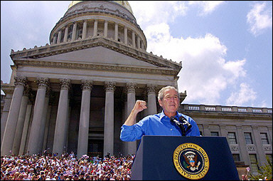 US President George W. Bush addresses an Independence Day celebration in front of the State Capitol in Charleston, West Virginia. [AFP]