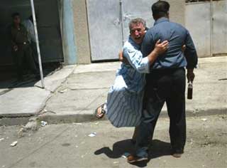 The hostage was shown surrounded by armed, masked men on a video broadcast by Al-Jazeera on Wednesday. The hostage wore a bright orange jumpsuit like that worn by American hostage Nicholas Berg and South Korean hostage Kim Sun-il when they were beheaded by Iraqi militants led by al-Zarqawi.