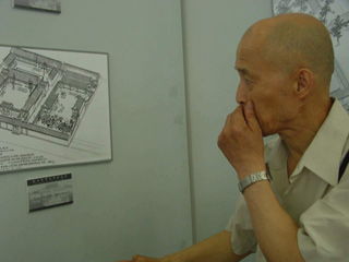 Zheng Xicheng ponders his sketches of old Beijing courtyard homes, many of which have been demolished. [China Daily]