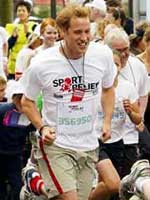 Britain's Prince William donned his sports gear and running shoes Saturday to join thousands of Britons on a one-mile charity jog in aid of Sport Relief.
