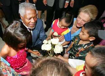"He's engaged and he was quite moved to hear people talk about it," Annan said. "But of course now we need a step forward to put resources to it."