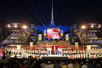 The ceremony was doubled as an occasion to celebrate the third anniversary of the Chinese capital's successful bid to host the 2008 Olympic Games. "Today three years ago was a day that the Chinese nation is most proud of when we were awarded the right to host the 2008 Olympic Games and Paralympics. This evening, we are here to celebrate once again and launch the 2008 Paralympic emblem," said Deng Pufang, President of the China Disabled Person' Federation (CDPF) and also a BOCOG executive president.