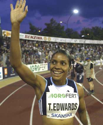 Although her case has not been resolved, the source, when asked whether Edwards could lose her Olympic eligibility, said: "That could happen." Edwards made the US Olympic team by finishing second in the 100 metres at the US Olympic trials on Saturday. She is scheduled to compete in the 200 metres beginning on Friday and is considered one of the favourites. Penalties for the use of a stimulant range from a public warning and loss of results to a two-year suspension. The source said Edwards had inadvertently taken a form of glucose that unknowingly contained nikethamide, a stimulant that can affect the central nervous system. Edwards could not be reached for comment. She was handed the world 100 title after compatriot Kelli White admitted to doping and was stripped of her world titles. Edwards also finished third in the 200 behind White and Russia's Anastasiya Kapachinskaya in Paris last year but was promoted to the silver medal with White's admission of guilt. |