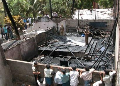 The fire at Kumbakonam, a dusty trading town on the banks of the Cauvery River famous for its temples, was the second major fire tragedy in the state this year. More than 50 people were killed in an inferno at a marriage hall in January.