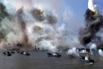 On Saturday afternoon, the exercise started with the lift-off of three red signal flares and lasted for one and half hours, said the report. Receiving orders, the defence mobilization committee of the city of Zhangzhou rapidly mobilized and organized the local citizens to enter a state of war. The exercise focused on how to provide support to the PLA on the sea when the war broke out. The report did not say at whom the exercise was aimed. However, the PLA and the Taiwan army are now both conducting military exercises. Militia exercised how to transport weaponry and personnel as well as practise logistics support, telecommunications and supply of oil and water, according to the report. Medical service as well as ship maintenance were part of the exercises, it added. The weekend exercises also involved militia boats firing ground-to-air guided missiles, said the report. The militia completed about 20 drill tasks. Lieutenant General Zhu Wenquan, commander of the Nanjing Military Region, and Lu Zhangong, governor and acting Communist Party chief of Fujian Province, attended the exercises. "People's war is the heirloom of our Party and our army. People's war is able to help us win fights in the future. People's war can help us finish the great cause of reunification," Zhu said. |