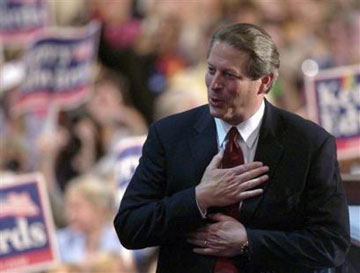 Gore won the popular vote in 2000 but lost the White House when the Supreme Court halted a recount of the Florida vote. To those still disappointed, or angry about it, he said, "I want you to remember all of those feelings. But then I want you to do with them what I have done: Focus them fully and completely on putting John Kerry and John Edwards in the White House."