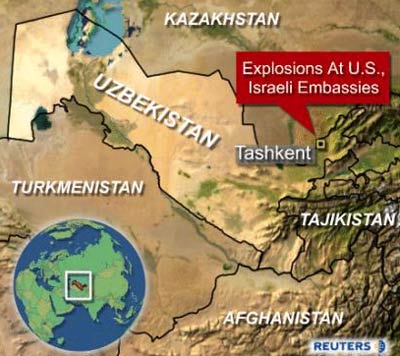 The three blasts appeared to have been triggered by suicide bombers. Uzbekistan is a U.S. ally in the war on terror.