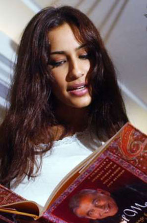 India crown in 1997, is seen browsing through Ismail Merchant's book 'My