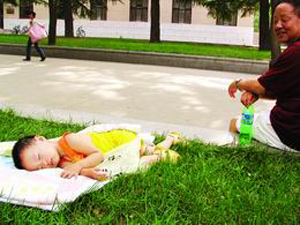 glassland nap in a tree shade in Qinghua University the afternoon of