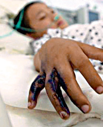 Officials say the boys uncovered the 50-centimetre-long barrel full of chemicals on July 24 when the two and some other children were playing near a river close to their village. Out of curiosity, one of the boys pried open the rusted weapon and the liquid flowing out of the barrel splashed onto their fingers and legs. Sources from the Tonghua Hospital said the Japanese officials and experts did not visit the two victims Monday. Parents of the victims have filed compensation demands in writing to the Japanese Government through local government, according to Xiangbao Newspaper. Since the two boys were injured, 30 more chemical weapons have been uncovered in the village. Some 670,000 chemical weapons were dumped in Dunhua, the area in China with the most abandoned Japanese chemical weapons, according to a report in the Shanghai-based Oriental Outlook. Experts say the potential hazard of Japanese-left chemical weapons still remain since many farmers are not aware of the serious damage the potentially lethal weapons may cause. |