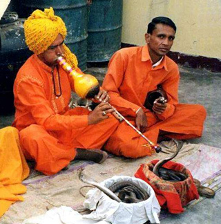 Aryanath earns 75 rupees (US$1.7) a day, which is more than the minimum wage rate in most Indian states. He usually carries a battered briefcase, adorned with frayed, colourful posters of Hindu gods and goddesses, filled with herbal powders and ointments made from dried herbs, roots and animal parts. Aryanath belongs to the Jogi-Nath Sapera, or snake charmers' community of north India, where trapping deadly snakes has been practised for generations. The Indian snake charmer is a stereotype, a tourism promotion, a mystical photograph in a coffee table book. He is also a man struggling to survive in the face of stringent animal conservation laws that make his profession illegal. The reptiles are inextricably intertwined with the Saperas' lives, from the antidotes they make for snakebites to the snakes they gift during weddings. Their catching skills ensure an exalted position in society, with many Saperas considered as gods. While the Wildlife Protection Act of 1972 bans the catching of snakes, the practice thrives. Saperas trap more than 400,000 snakes a year, which eventually die. The law aimed to stop the international trade in reptile and cat skins, ivory, and live birds and mammals. Conservationists say before the act came into being about 10 million snakes were killed every year for their skin. The Saperas do not sell snake skins. They trap eight species, including the rat snake, king cobra and python. V.K. Bahuguna, inspector general of forests, said when the law was framed it ignored the livelihood issue of traditional communities. A project by the Wildlife Trust of India (WTI) - a leading conservation organization - attempts to provide Saperas with alternate livelihoods and ensure the welfare of snakes. Revered and reviled, snakes have a special place in Indian tradition. During the snake festival of Nag Panchimi in July-August, cobras are trapped, worshipped, fed with rats and milk and eventually set free. Banwarinath Sapera said there were about 1 million of them in north India alone. The men travel in groups often for three months at a stretch. They wear saffron, their heads anointed by turbans in blazing orange, fiery red or shimmering pink. The catching is only done by men, who remove the snake's poisonous fangs. A survey conducted by WTI found most captive snakes to be in poor health, with mouth infections from the venom removal. When the snakes grow weak they are quickly released in the wild, a WTI report said. A dead snake is a bad omen and invites a hefty monetary fine from the village council. Without its fangs the reptile is unlikely to survive in the wild. Conservationist Bahar Dutt, who worked with Saperas for three years, said: "Some look after their snakes well, some do not. My study did not attempt to portray a romantic picture of the community. There are serious animal welfare concerns as well as poverty issues involved." Dutt visited remote snake charmers' villages to earn the trust of a suspicious community plagued by alcoholism and drug abuse. They rarely venture into larger cities because of the fear of being caught by animal inspectors. In a study of 537 Saperas, Dutt found that despite a 30-year-old ban on snake catching, most were still entirely dependent on snakes for their livelihood. The older Saperas insist the strict laws have pushed them into poverty, some even beg for a living. The youth say the charm of the trade is lost. "We have to learn it because it is passed down from our forefathers, but snake charming is of no use to me today," said Jeethnath, 23. Others say there is too much competition from radio and television. Some admitted they were embarrassed to follow an "archaic" occupation - they would rather study, work in the city, and get government jobs. Many Saperas have formed "been parties" or music bands of seven. During the wedding season each Sapera can earn nearly 3,000 rupees (US$66) per month. Their vast knowledge of herbal medicines has also transformed them into barefoot village doctors, critical in rural India where the public health system is almost non-existent. They treat skin infections, gastric and menstrual problems, asthma and paralysis. In India about 15,000 to 20,000 people die every year from snake bites. Herpetologist Romulus Whitaker said: "Statistics indicate that you are twice as likely to die of rabies in India than by snakebite. To me that's very scary." "But a snakebite is also a traumatic experience that many people in the villages think more about it than about other diseases. It is still surrounded by mystery and is frequently associated with gods and devils." Conservationist Dutt said the Sapera's knowledge could be used to educate people. "I have planned something like a dial-a-snakecharmer-service. People are constantly calling Saperas to remove snakes from their homes, gardens and fields. They can be paid a small fee for this. "They are currently paid between 50 to 500 rupees (US$1.1-11) depending on how much effort went into catching the snake. Elderly Shish Nath Sapera is reluctant to let go of his snakes. "India is