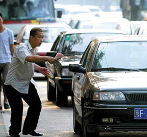 A man peddles the entrance tickets for the Asian Cup final on a street near the Worker's Stadium August 7. [sohu]