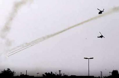 A video tape from a group calling itself The Islamic Army in Iraq -- which was reported to have killed two Pakistani hostages last month -- Sunday showed a bearded man, wearing a white shirt in front of a black banner bearing the group's name. In this photo, a U.S. Marines Cobra attack helicopter fires rockets over the city of Najaf on August 8, 2004. [Reuters]
