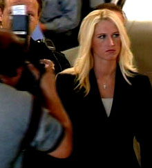 One week earlier, prosecutors say, Peterson had already murdered his eight-months pregnant wife and dumped her weighted body into San Francisco Bay. Prosecutors maintain it was Peterson's relationship with Frey, a massage therapist, that drove him to kill Laci. Frey's testimony was expected to be key to prosecutors' case against the 31-year-old fertilizer salesman from Modesto, California. In her long-awaited testimony before a packed courtroom in Redwood City, California, Frey said Peterson assured her he was single as he wooed her with strawberries and champagne and sang karaoke. She told the jury she was so comfortable with Peterson, who wore no wedding ring, that by the end of their first date they had sex in his hotel room. "He reassured me that it was appropriate (to have sex) in light of the evening's events," Frey testified. The Nov. 20, 2002, date occurred about five weeks before Peterson's pregnant wife disappeared. Peterson reported her missing on Christmas Eve of 2002, telling police she had vanished while he was out fishing in San Francisco Bay. The bodies of Laci Peterson and the couple's unborn son washed out of the bay four months later. Scott Peterson could face the death penalty if he is convicted. Frey recalled how Peterson brought them back to his hotel room early on in their first date so he could change his clothes. She said he deftly pulled out a bottle of champagne. "He also pulled out a little box of strawberries for the champagne and put one in each of our glasses," Frey testified, glancing at her former lover across the courtroom. "I remember eating one. They were a little bit sour." On another date, when they shared a bottle of wine, Frey testified that she wrote their initials on the cork as a memento. He said there would be many more to come," Frey said, "Many more corks, many more bottles to share." Frey started secretly recording her conversations with Peterson after she learned of his wife's suspicious disappearance. On Dec. 31, Frey said, Peterson called her to joke about his New Year's holiday at the Eiffel Tower. He was actually on his way to a candlelight vigil for Laci, who had been missing for a week. "It's pretty awesome," Peterson said, according to a transcript of the phone call. "Fireworks there at the Eiffel Tower. A mass of people all playing American pop songs ... It's really funny."
