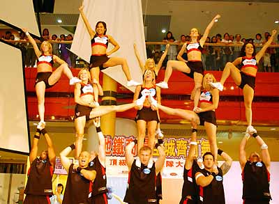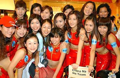 photo before a performance in Hong Kong, August 12, 2004. Top cheering