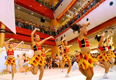 Cheering performance (newsphoto) Updated: 2004-08-13 11:41
