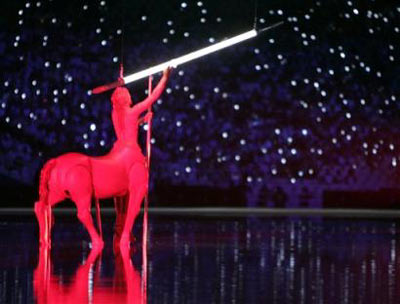 A Centaur throws a lance during the Opening