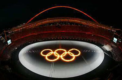 The Olympic rings are lit up