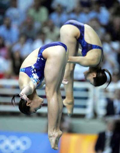 Wu Minxia, Guo Jingjing dived to win the women's three-meter sychronized