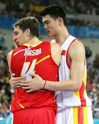 Gasol left with a nosebleed early in the game, but soon came back to take control with 21 points. Yao ended up fouling out with 12 points under a barrage of fine inside play by Spain.