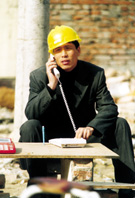 A migrant worker calls his family at a construction site. [file photo]
