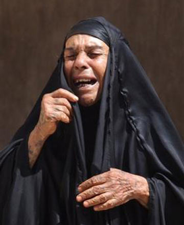 A Shiite woman cries for her neighbor, shot