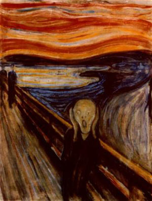 Munch, a Norwegian painter and graphic artist who worked in Germany as well as his home country, developed an emotionally charged style that was of great importance in the birth of the 20th century Expressionist movement. He painted "The Scream" in 1893, and together with "Madonna" it was a part of his "Frieze of Life" series, in which sickness, death, anxiety, and love are central themes. He died in 1944 at the age of 81. ___ Munch Museum site: http://www.munch.museum.no/en/artworks.htm