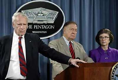 The prison's weaknesses were no secret and they should have been fixed, said James Schlesinger, chairman of the four-member advisory panel appointed by Secretary of Defense Donald Rumsfeld in early May to investigate abuse allegations. "We believe that there is institutional and personal responsibility right up the chain of command as far as Washington is concerned," Schlesinger told a news conference to release the 126-page report. Former Republican Rep. Tillie K. Fowler of Florida, a panel member who was once a senior member of the House Armed Services Committee, was more direct. "We found fundamental failures throughout all levels of command, from the soldiers on the ground to Central Command and to the Pentagon. These failures of leadership helped to set the conditions which allowed for the abusive practices to take place," Fowler said.