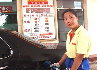 A worker at a PetroChina gas station refuels a car in Beijing August 25, 2004, the day of oil price hikes. [Xinhua]