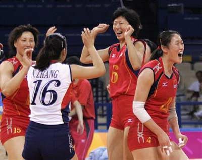 Hao Yang killed four of her team's last five points in the fifth set and finished with 23 points for the Chinese, whose powerful attack was ultimately too much for Cuba in a 25-22, 25-20, 17-25, 23-25, 15-10 victory Thursday night. On match point, Hao wound up and whacked a powerful spike from the left side that bounced off the arms of Liana Mesa Luaces and sailed out of the court. The Chinese players hugged and cried at the thought of returning Saturday to play for their country's first gold medal since 1984. They will face a Russian team that dropped its first two sets and trailed in each of the last three before coming back to beat Brazil 18-25, 21-25, 25-22, 28-26, 16-14. Ekaterina Gamova scored 32 points to lead the Russians against a frazzled Brazilian team that blew a 24-19 lead in the fourth set and wasted a total of seven match points. "Even when we fell behind, we had faith in ourselves and we knew that we would be the winners," Gamova said through an interpreter. The Brazilians were winning by overshadowing the imposing Russian block with an impressive one of their own. Russia is the tournament leader in defense at the net, averaging just under three blocks per set, and Brazil beat them in that category 20-12. Brazil consistently aligned two or three defenders in perfect spots to stop the 6-foot-8 Gamova's long, high swing. The quick, efficient offense the Brazilians are known for deserted them when it counted. Five of Russia's last eight points in the fourth set came on hitting errors by Brazil. After taking a 13-10 lead in the fifth set, the Brazilians let the Russians climb back to tie it at 14. A ball hit by Virna Dias was blocked by Marina Sheshenina, and Marianne Steinbrecher's spike landed long to give the Russia the win. Stern Russian coach Nikolay Karpol even managed to crack a smile, while a disconsolate Dias hugged friends in the Brazilian fan section for several minutes. For the third straight Summer Games, the Brazilians — the only unbeaten team in the preliminary round — head to the third-place match. "We had our chances," middle blocker Valeska Menezes said. "Unfortunately the ball kept stopping on the net, and we could not earn the points we needed." |