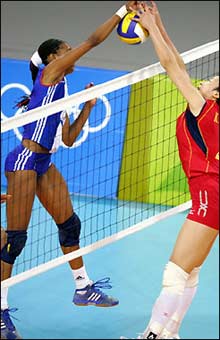 their semi-final match in the 2004 Olympic Games volleyball in Athens. [AP