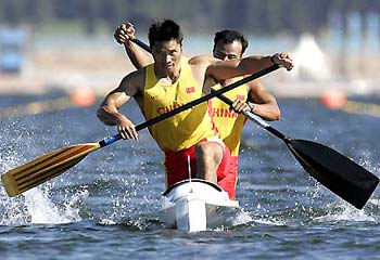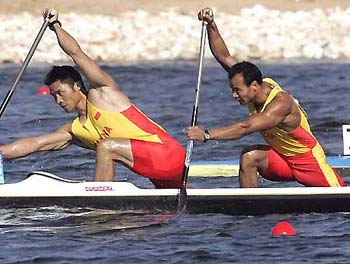 Chinese pair Meng Guanliang and Yang Wenjun won China the 28th gold medal at the Athens Olympic Games when they triumphed in the men's C2 500m final on Saturday. Meng and Yang were timed at 1:40.279 for the title, followed by Cuba and Russia in the second and third places respectively. Romania, Sydney 2000 bronze medallists, finished fourth. Just after crossing the finish line none of the competitors were sure of who had won as six boats finished in less than 0.580 seconds and a photo finish was needed to split them.