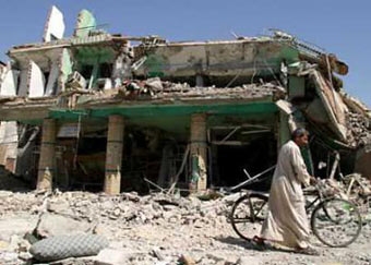 "The only thing the fighting accomplished was the destruction of Najaf. Look at our hotel. We were just making progress building it," said hotel employee Rafaat Maher, standing on a balcony pockmarked by bullets and looking down on a makeshift roadside graveyard for victims of the fighting.