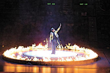 The popular star made his performance extra special by lighting up the edge of the stage to look like a big ring of fire. China Radio International reported Wednesday.