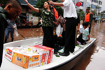 Yunyang County in Sichuan has suffered 23 landslides, which buried more than 350 homes and killed seven people, local media said. Sichuan provincial disaster relief officials said a rescue group of more than 150 is on its way to Dazhou to provide help. A group of experts was sent to Dazhou on Sunday by the Ministry of Civil Affairs to help guide disaster relief work. No immediate respite was in sight with rain expected through today, according to meteorologists. Local governments were appealing for help from the nation's air force to help reach people cut off by the rising waters, Xinhua said. The provincial government has also sent three work teams to the flood-hit areas to monitor the rescue work. In Chongqing, rainfall has reached 327.3 millimetres, the highest in 200 years, local media reported. About 56,000 houses have been damaged and 82,000 people forced to flee their homes. In East China, anti-flood and disaster relief departments are prepared to fight an approaching typhoon, the 19th this year, which is expected to hit Shanghai and Zhejiang Province today. Rainstorms and heavy winds are expected over the next few days in coastal regions of eastern China. |