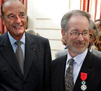 French President Jacques Chirac decorated US filmmaker Steven Spielberg