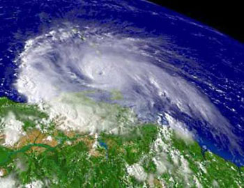 Ivan, the latest storm in a busy Atlantic hurricane season, swept south of Barbados and over Grenada, brushing past Tobago as it headed into the Caribbean basin far south enough to prompt precautions on Venezuela's coast. Ivan, seen in this September 7 satellite photo, was a powerful storm with sustained winds of 120 mph, the U.S. National Hurricane Center said. [Reuters]