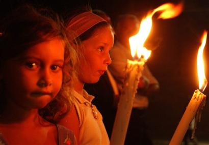 A crowd of demonstrators snaked through the heart of Rome on Friday evening, holding flickering candles in their hands.