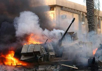 At least 37 people were killed in Baghdad alone. Many of them died when a U.S. helicopter fired on a disabled U.S. Bradley fighting vehicle as Iraqis swarmed around it, cheering, throwing stones and waving the black and yellow sunburst banner of Iraq's most-feared terror organization.