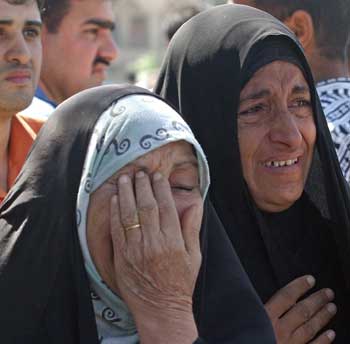 Iraqi women cry at the scene of an explosion in central Baghdad, September 14, 2004. [Reuters]