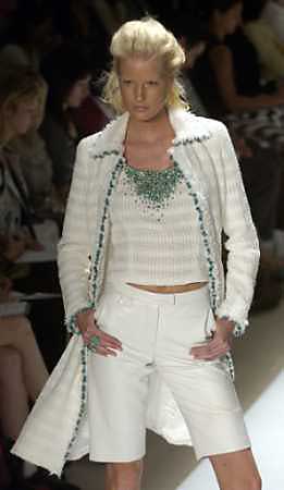 Marc Jacobs showed 1950s' style sweater sets and dresses of florals and gingham; Carolina Herrera showed knee-length Bermuda shorts; Kenneth Cole had pleated skirts and wide-legged trousers and Oscar de la Renta showed boucle suits.
