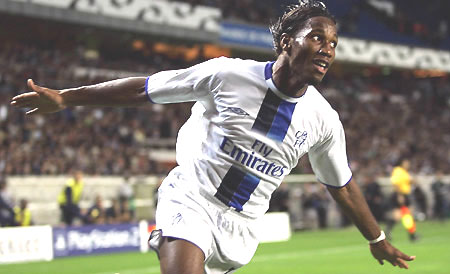 striker Didier Drogba of France (L) talks with his captain John Terry (C)