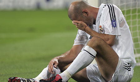Zinedine Zidane reacts after an injury during their Champions League Group