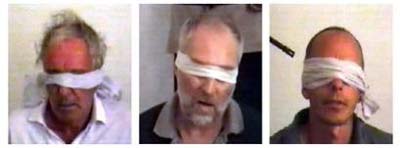 In Internet video footage the three hostages were shown kneeling blindfolded on the ground, with a hooded gunman aiming his weapon at the head of one of the captives.