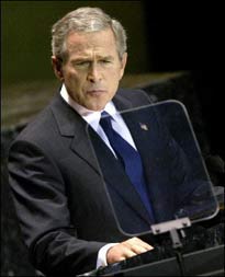 US President George W. Bush defiantly told the United Nations that the war in Iraq was justified and demanded more UN action to help end the deadly chaos that has followed the US-led invasion. [AFP]