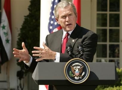 President Bush speaks during a joint news conference with Iraq's interim Prime Minister Ayad Allawi, in the Rose Garden of the White House Thursday, Sept. 23, 2004 in Washington. [Reuters]